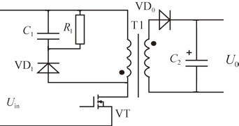 常規單端反激電路結構如圖1所示,該電路的缺點在於功率管VT截止時,變壓器初級的反峰能量,被VD1、C 1和R 1組成的吸收電路消耗掉;而且在輸出功率相同的情況下,功率管通過電流(相對於多管並聯)大,導通壓降高,損耗大,所以效率和可靠性較低。