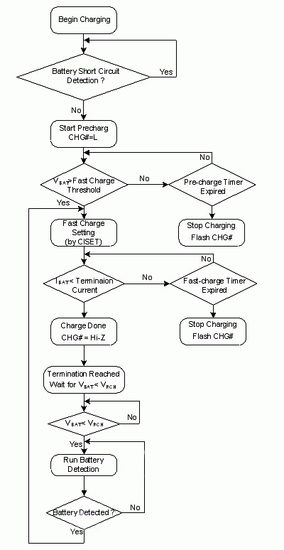 然而,當電池故障時,電池可能無法儲存電能,電壓抑不會升高,所充入的能量轉變成熱,除了依靠過溫度保護機製之外,IC內部亦具有超時定時器,無論此時電池電壓狀態如何,隻要超過設定充電時間後,隨即關閉充電器,以達到多重保護使用者之功能。