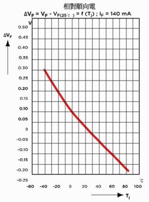 圖1 順向電壓隨接麵溫度升高而下降
