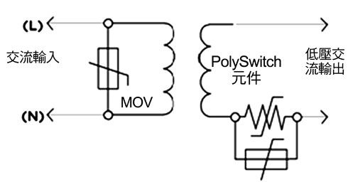 在照明係統中采用第二類功率源可成為降低成本、提高彈性的重要因素之一。固有的有限功率源,如變壓器、dianyuangongyingqihuodianchideng,keyibaohanbaohuzujian,zhiyaobuyikaotamenxianzhidierleigonglvyuandeshuchujike。feiguyouxingdeyouxiangonglvyuan,anzhaodingyi,juyouyigefenlibaohuzujian,dangdianliuhenengliangshuchudadaoyudingzhishitahuizidongzhongduanshuchu,gezhongdianlubaohuzujiandouyouzhuyutigongLED照明應用第二類功率源的安全操作。圖4表示了一種協同保護策略的工作原理,它在交流輸入上采用了一個MOV,在輸出電路分支上采用了一個PolySwitch組件,可以幫助廠商滿足UL 1310第35.1小節針對開關和控製裝置的過載試驗要求。