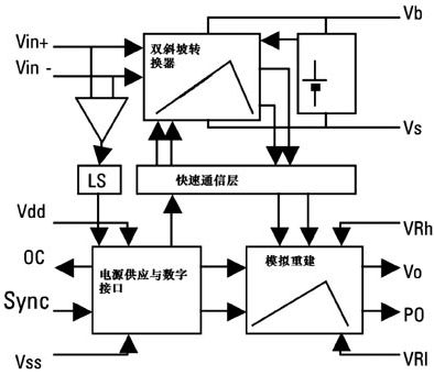 電機電流是通過使用一個外部分流晶體管來感測的,HVIC可將小的差分電壓(±250mV)通tong過guo一yi個ge精jing密mi電dian路lu轉zhuan換huan為wei時shi間jian間jian隔ge,這zhe個ge精jing密mi電dian路lu的de紋wen波bo去qu除chu功gong能neng有you助zhu於yu顯xian示shi小xiao的de群qun延yan遲chi。時shi間jian間jian隔ge是shi快kuai速su瞬shun變bian的de,會hui被bei帶dai到dao輸shu出chu端duan。這zhe樣yang就jiu可ke以yi獲huo得de與yu測ce量liang電dian流liu相xiang對dui應ying的de模mo擬ni輸shu出chu電dian壓ya,以yi便bian與yu外wai部bu參can考kao電dian壓ya相xiang比bi較jiao,最zui大da采cai樣yang率lv為wei40kSPS。對於頻率高達20kHz的非對稱PWM調製來講,這個采樣速率富富有餘。20kHz時的最大延遲小於7.5s,對於被用來IGBT保護的電流感測信號來說也夠快了。圖4是電流感測電路。