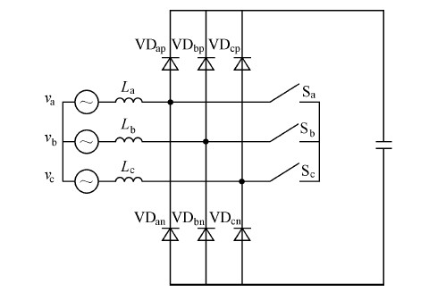 即 van0, vbn0 和vcn0 分別為各相電壓不含零序電壓的部分。由式(6) 和式(7 )可知,各相電流仍能保持低電流畸變。但若(va+vb+vc)/3≠0, 輸shu入ru電dian流liu和he輸shu入ru電dian壓ya會hui存cun在zai一yi個ge相xiang位wei差cha,從cong而er導dao致zhi係xi統tong不bu能neng實shi現xian單dan位wei功gong率lv因yin數shu。為wei使shi係xi統tong仍reng能neng實shi現xian單dan位wei功gong率lv因yin數shu的de目mu標biao,必bi須xu改gai進jin係xi統tong的de控kong製zhi策ce略lve。