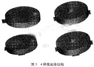 根據設計的4種微流體結構,實驗采用fluent軟件進行微流體模擬,驗證不同結構的可行性,通過性能上的一些比對,選擇合理的微反應室和進出樣溝道結構。