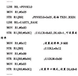 無線模塊通過UART串口與係統相連,所以必須對UART進行初始化,LPC2104的UART串口符合RS232標準,也支持550工業標準。