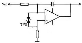 集(ji)成(cheng)運(yun)放(fang)對(dui)外(wai)界(jie)電(dian)應(ying)力(li)非(fei)常(chang)敏(min)感(gan)。因(yin)此(ci),在(zai)使(shi)用(yong)運(yun)放(fang)的(de)過(guo)程(cheng)中(zhong),如(ru)果(guo)因(yin)操(cao)作(zuo)失(shi)誤(wu)或(huo)采(cai)取(qu)了(le)不(bu)正(zheng)常(chang)的(de)工(gong)作(zuo)條(tiao)件(jian),往(wang)往(wang)會(hui)出(chu)現(xian)過(guo)大(da)的(de)電(dian)壓(ya)或(huo)電(dian)流(liu),特(te)別(bie)是(shi)浪(lang)湧(yong)和(he)靜(jing)電(dian)脈(mai)衝(chong),從(cong)而(er)很(hen)容(rong)易(yi)使(shi)運(yun)放(fang)受(shou)損(sun)或(huo)失(shi)效(xiao)。圖(tu)4所示是用TVS在運放差模輸入端防止過壓損傷的保護電路。