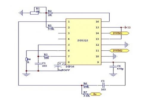 本設計采用的電源核心控製部分的芯片為美國通用公司芯片SG3525.控製電路如圖: