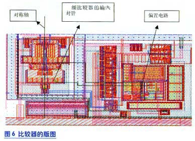 芯片采用了0.18μm的1P6MCMOS設計工藝,在實現高分辨率的同時也能獲得較高的速度,模擬結果表明,分辨率可以達到12bit。在版圖設計中,為了增強差分管的匹配性,管子和連線都采用全對稱的設計結構,版圖如圖6所示,麵積為120μm×130μm。
