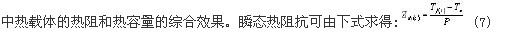 由(you)於(yu)電(dian)力(li)電(dian)子(zi)器(qi)件(jian)工(gong)作(zuo)在(zai)周(zhou)期(qi)性(xing)的(de)開(kai)關(guan)狀(zhuang)態(tai),就(jiu)需(xu)考(kao)慮(lv)其(qi)瞬(shun)態(tai)熱(re)阻(zu)所(suo)造(zao)成(cheng)的(de)結(jie)溫(wen)波(bo)動(dong)是(shi)否(fou)超(chao)過(guo)最(zui)大(da)結(jie)溫(wen)。瞬(shun)態(tai)熱(re)阻(zu)反(fan)映(ying)散(san)熱(re)途(tu)徑(jing)中(zhong)熱(re)載(zai)體(ti)的(de)熱(re)阻(zu)和(he)熱(re)容(rong)量(liang)的(de)綜(zong)合(he)效(xiao)果(guo)。瞬(shun)態(tai)熱(re)阻(zu)抗(kang)可(ke)由(you)下(xia)式(shi)求(qiu)得(de):