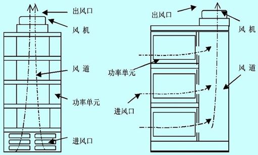 並bing聯lian風feng道dao中zhong從cong每mei個ge功gong率lv單dan元yuan的de前qian麵mian進jin風feng,對dui應ying的de進jin風feng口kou並bing聯lian排pai列lie,在zai後hou麵mian的de風feng倉cang中zhong彙hui總zong後hou由you風feng機ji抽chou出chu,同tong時shi整zheng個ge功gong率lv櫃gui一yi般ban采cai用yong冗rong餘yu的de方fang法fa,有you多duo個ge風feng機ji並bing聯lian運yun行xing,整zheng體ti散san熱re效xiao果guo好hao,並bing提ti高gao了le設she備bei的de可ke靠kao性xing。但dan櫃gui體ti後hou麵mian要yao形xing成cheng風feng倉cang,增zeng大da了le設she備bei的de體ti積ji,同tong時shi由you於yu各ge個ge功gong率lv單dan元yuan後hou端duan到dao風feng機ji的de距ju離li不bu同tong,使shi得de每mei個ge功gong率lv單dan元yuan的de風feng流liu量liang不bu一yi致zhi,在zai設she計ji時shi應ying加jia以yi考kao慮lv。