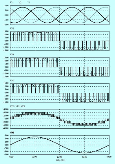 圖9 單相矩陣級聯的仿真波形