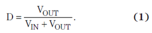 假設 100% 效率占空比 D,用於 CCM 運行的 ZETA 轉換器,其為: