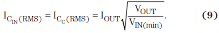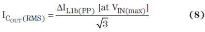 輸出電容必須有一個大於電容 RMS 電流的 RMS 電流額定值,其計算方法如方程式 8: