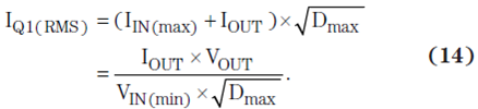 其中,QGD 為柵極到漏極電荷,QG 為 FET 的總柵極電荷,IGate 為最大驅動電流,而 VGate 為控製器的最大柵極驅動。Q1 的 RMS 電流為: