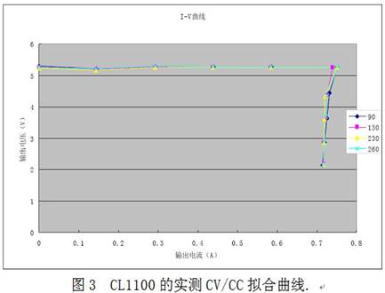 芯聯半導體推出的CL1100就是一款具備初級(原邊)調節技術、變壓器容差補償、線纜補償和EMI優化技術的原邊反饋AC-DC控製器,並且具有多種保護功能,例如軟啟動、逐周期的過流保護(OCP)、CS采樣端前沿消隱(LEB)、以及過壓保護(OVP)和欠壓保護(UVLO)。實測的CL1100的恒壓/恒流特性曲線如圖3所示,該芯片可將恒壓/恒流精度都控製在±3%之內。