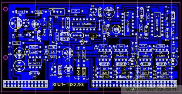 SPWM的驅動核心采用了單片機SPWM芯片TDS2285,所以,SPWM驅動部分相對純硬件來講,比較簡單,製作完成後要調試的東西很少,所以,比較容易成功。