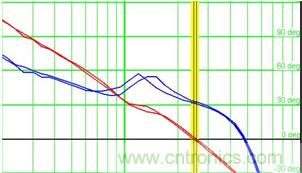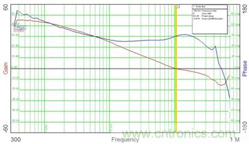 我們有可能會看到的相位裕量不能達到要求。如下圖七,隻有30度左右。這個時候,隻有調試不同的參數,才能得到比較好的結果。從而滿足係統穩定性的要求。