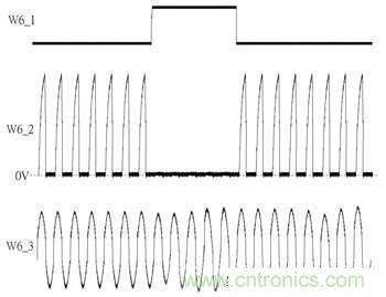 參考圖2其W6_3為線圈訊號、W6_2為S12即Q13之閘極端訊號、W6_1為Q131閘極端訊號,當RX-U1輸出高電位到Q131便會使該區段S12訊號維持在低電位,造成整流器在該區段不發生導通狀況,用意在於暫停整流動作。