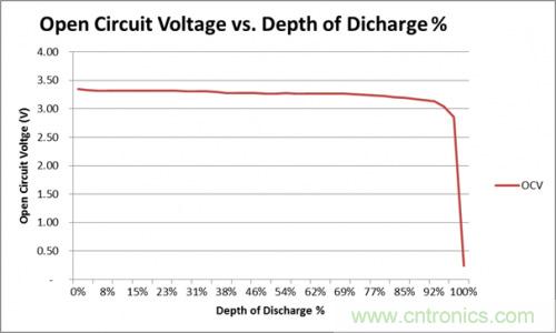某些鋰離子化學電池,比如說磷酸鋰鐵電池,SoC相對於電池電壓的曲線非常平緩。電池電壓中的一個小誤差就有可能導致SoC估算中的巨大誤差。