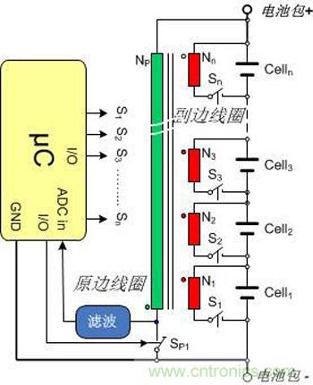 因為被動均衡的局限,主動均衡的概念得以提出並發展。主動均衡是把高能量電池中的能量轉移到低能量電池中,相當於對木板“截長補短”。因為不像被動均衡隻有“截”,在如何“補”的問題上業內充分發揮了各自的優勢和想象力,主動均衡的方案可謂異彩紛呈。除了飛度電容的方案(因為適用串數低,轉移有局限性而未能成為主流),還有變壓器的方案,變壓器方案中又有各種拓撲結構。半導體廠家也設計了電池專用的DCDC轉換芯片,命名為主動均衡控製芯片來推向市場,顯然是不想錯過這班車。