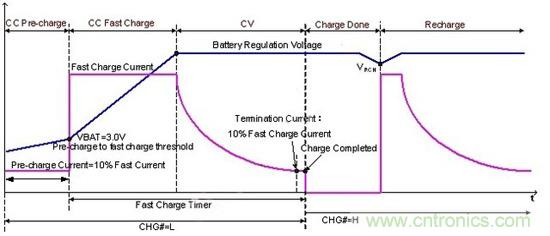 先來了解下鋰電池手機完整充電的三個階段:恒流預充電、大(da)電(dian)流(liu)恒(heng)流(liu)充(chong)電(dian)和(he)恒(heng)壓(ya)充(chong)電(dian)。手(shou)機(ji)電(dian)量(liang)耗(hao)光(guang)之(zhi)後(hou)電(dian)壓(ya)降(jiang)低(di),當(dang)低(di)於(yu)一(yi)定(ding)數(shu)值(zhi)時(shi)充(chong)電(dian)器(qi)會(hui)使(shi)用(yong)比(bi)較(jiao)低(di)的(de)電(dian)流(liu)對(dui)鋰(li)電(dian)池(chi)進(jin)行(xing)預(yu)充(chong)電(dian)。經(jing)過(guo)一(yi)段(duan)時(shi)間(jian),鋰(li)電(dian)池(chi)電(dian)壓(ya)高(gao)於(yu)預(yu)定(ding)數(shu)值(zhi)後(hou),就(jiu)進(jin)入(ru)第(di)二(er)個(ge)階(jie)段(duan)大(da)電(dian)流(liu)恒(heng)流(liu)充(chong)電(dian),此(ci)時(shi)適(shi)當(dang)提(ti)高(gao)電(dian)流(liu)可(ke)以(yi)加(jia)快(kuai)充(chong)電(dian)速(su)度(du),具(ju)體(ti)過(guo)程(cheng)可(ke)以(yi)參(can)考(kao)下(xia)圖(tu)。