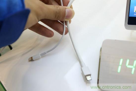 在初中物理中我們學過“並聯分流”,雖然提高電流可以減少充電時間,但電流過大容易使係統過熱,這時候多電池並聯分流(OPPO快充的電池觸點要比普通電池多幾個)就可以有效解決這個問題。而減少線纜的電阻值也可以減少發熱,所以我們看到OPPO在現場演示的超級快充的充電線纜幾乎和筆記本電腦充電線相同粗細。