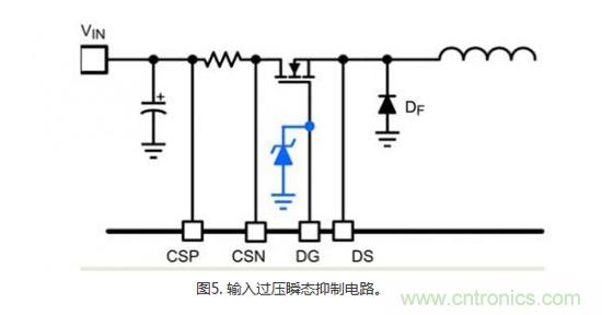 需牢記的一點是,雖然將MOSFET用於保護功能可實現對湧入或故障情況的快速響應,但是你應該在MOSFETdeshuchuduanshangzhixingyigeshidangdedianyahuanchong,yiquebaoyongyubaohugongnengdeqijianbuhuishixiayoudianluchuxianwenti。zaishengyadianluzhong,baohuqijianzhihouchuxiandediyigezhichashizujianshiyuanbiandianganqi。xuliuerjiguankeyiguanlibaohuMOSFET與電感器之間的任何電壓振鈴,它隻有在保護開關迅速關閉時才會導電,特別是在斷路器位於電感器左側時(圖5)。