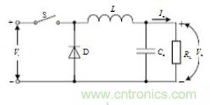 圖中S為功率開關,D為二極管,L為電感,Co為輸出電容,RL為負載。Vi為輸入電壓,Vo和Io分別為輸出電壓和輸出電流。