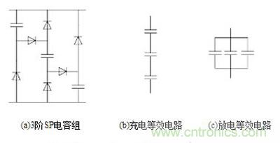 對於輸入輸出電壓相差很懸殊的情形,DC-DC變換器一般需要采用脈衝隔離變壓器來滿足電壓變比的要求。還可以采用如圖3所示的串並電容組合結構(SP)[7,8]構gou成cheng工gong作zuo儲chu能neng電dian容rong器qi,它ta具ju有you串chuan聯lian充chong電dian和he並bing聯lian放fang電dian的de特te性xing,因yin此ci在zai失shi去qu交jiao流liu電dian源yuan而er由you工gong作zuo儲chu能neng電dian容rong器qi放fang電dian維wei持chi工gong作zuo期qi間jian,串chuan並bing電dian容rong組zu合he結jie構gou實shi際ji上shang起qi到dao了le降jiang壓ya的de作zuo用yong。通tong過guo選xuan取qu恰qia當dang階jie數shu的de串chuan並bing電dian容rong組zu合he結jie構gou,就jiu有you可ke能neng在zaiDC-DC變換器中不需要采用隔離變壓器也能滿足電壓變比的要求。