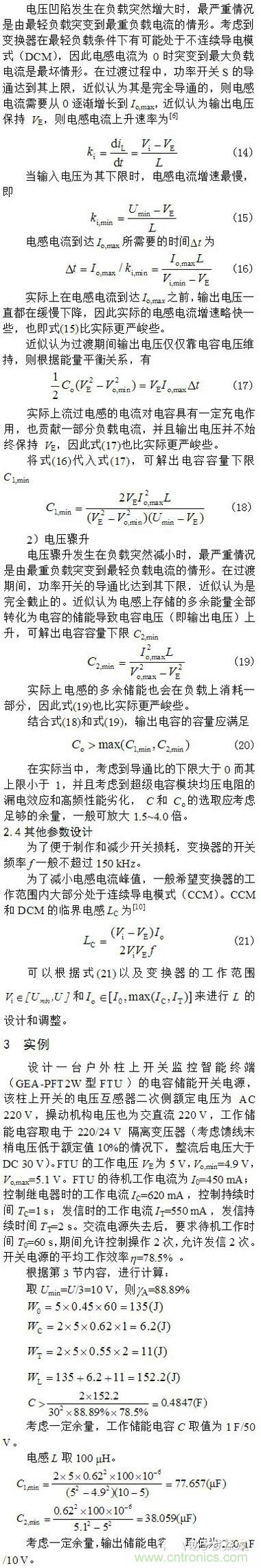 電容儲能的自動化終端備用開關電源設計