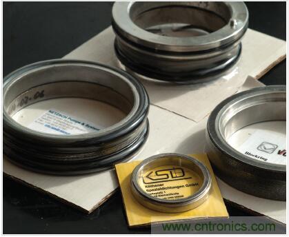 現在,KSD公司使用R:LM2 係統對工業水龍頭的墊片以及滑環或旋轉密封件的滾道承重麵(圖3)進行熔覆。這種密封元件用於回轉泵、潛水泵或螺旋給料機。用於安全或控製配件的墊圈必須能承受極端的應力,如空蝕或流體流動磨損。它們一般在-255°至650°C的溫度範圍內工作,需要與研磨介質一起使用,衝數大於100,000/年。軸承表麵需要在400,000千米/年的移動速度下與具有研磨性或膠粘性的高粘度介質一起工作。到目前為止,使用R:LM2 工藝製造的全鐵合金熔覆層已經被證明能有效勝任這些應用。