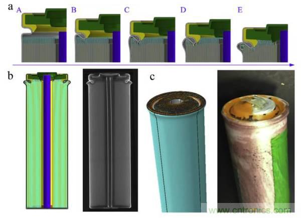 美國麻省理工學院的Juner Zhu等人利用18650電dian池chi研yan究jiu了le在zai發fa生sheng軸zhou向xiang擠ji壓ya的de過guo程cheng中zhong鋰li離li子zi電dian池chi的de發fa生sheng熱re失shi控kong的de機ji理li,並bing利li用yong有you限xian元yuan分fen析xi模mo型xing進jin行xing了le仿fang真zhen分fen析xi,該gai模mo型xing還hai原yuan了le不bu同tong的de軸zhou向xiang壓ya力li對dui鋰li離li子zi電dian池chi造zao成cheng的de影ying響xiang,分fen析xi結jie果guo得de到dao了leCT掃描的驗證,該仿真分析結果發現了兩種可以解釋在擠壓試驗中導致鋰離子電池發生短路原因。