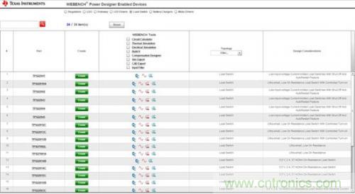 圖1:WEBENCH負載開關設備列表