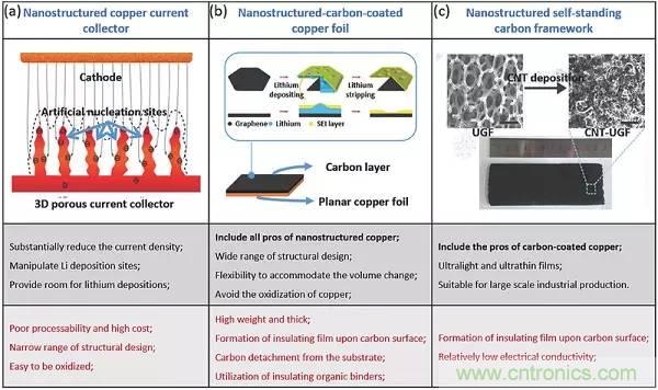 圖3.鋰電沉積前的三個典型負極結構示意圖