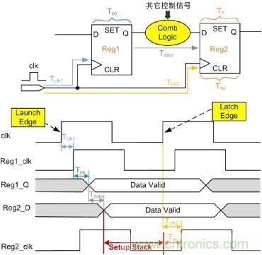 如果建立時間的裕量Setup Stack小於0,則不滿足建立時間,也就會產生不穩定態,並通過寄存器傳輸下去。