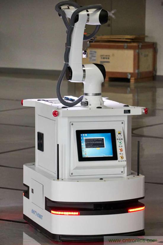 Star機器人是大族機器人產品線的一款明星產品,該機器人融合了大族自有的移動機器人、機械臂、視覺係統、力控夾具等核心部件,可以實現手臂末端±0.2mm的重複抓取精度。機器人運行過程中通過磁帶與激光SLAM混合導航,運行靈活,機器人可以實現前進、後退、原地轉向等動作。機械臂臂展可以達到950mm。