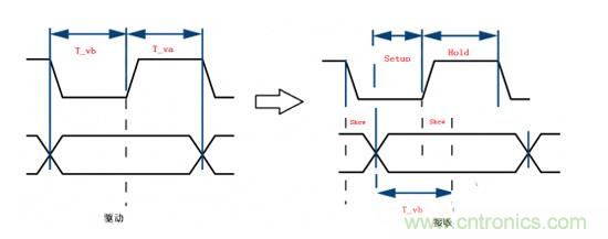上圖中,T_vb與T_vabiaoshideshizhukongxinpianzaishuchushujushishizhongyushujuzhijiandeshixucanshu。zailixiangqingkuangxia,shizhongbianyanheshujudianpingdezhongxinshiduiqide,youyushizhongheshujuchuanshutongdaobudengchang,shideshizhongbianyanmeiyouheshujumaichongdezhongjianweizhiduiqi,shidejianlishijiandeyuliangbianxiao。zailijielezhexiejichuwentizhihou,womenxuyaozuodejiushijiangzhexieshijiancanshuzhuanhuaweixianchang。