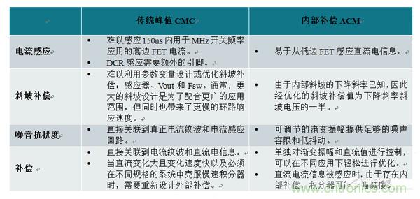 表1.傳統峰值電流模式和內部補償式ACM的比較
