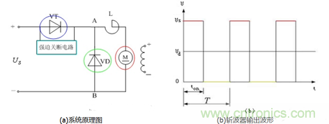 圖3中(a)圖為采用晶閘管做開關的直流斬波器—電動機調速係統原理圖。