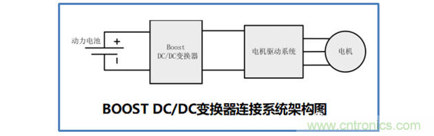 新能源汽車上使用的BOOST DC-DC變換器主要用於高壓係統的升級,將動力電池係統的電壓等級再行升高, 以匹配更高等級的電機驅動係統。BOOST DC/DC 變換器的係統結構圖下圖所示。