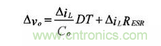 輸出濾波電容的選擇應考慮工作頻率、輸出電流紋波、輸出電壓紋波和能量儲存能力。電解電容的等效串聯電阻(ESR)會隨開關工作頻率的變化而變化。輸出電壓的紋波由以下公式給出: