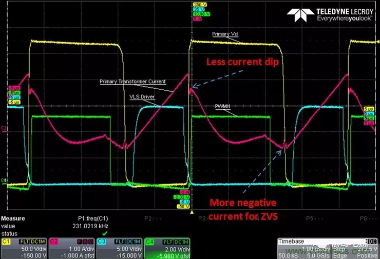 (2)、GaN的Coss 及Qoss非常小,要求實現ZVS開通所需要的激磁電流小,這樣就減小係統的環流,從而降低在功率MOSFET和變壓器中產生的導通損耗,同時也可以減小變壓器磁芯的損耗。