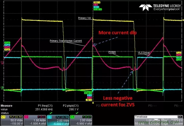 (5)、超結的高壓功率MOSFET的Coss的非線性特性,在低壓時會突然急劇增加,因此在設計時需要有更長的死區時間,從而降低了係統效率。