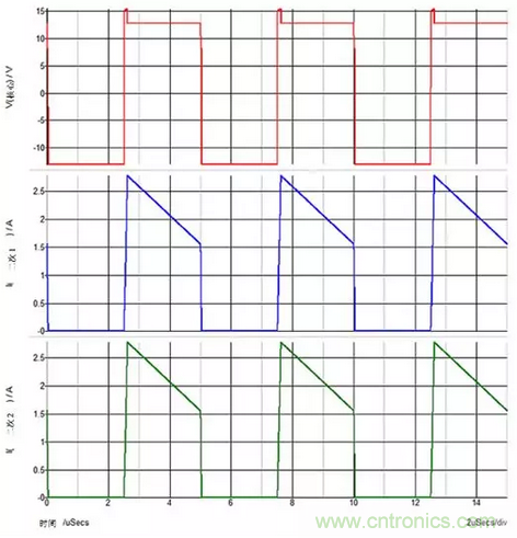 圖3:重載次級1和輕載次級2。基座電壓對次級2的輸出電容器進行峰值充電。