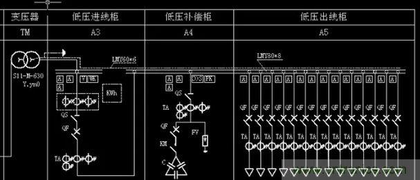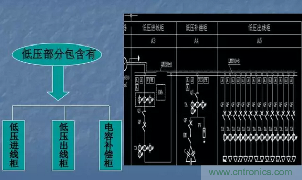 1.低壓進線櫃;2.低壓出線; 3.低壓補償櫃