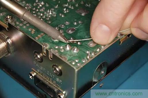 現在,用一些助焊劑來準備給銅點鍍錫(簡單地在銅焊點上刷一層薄焊料)