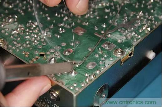 接著焊接導線的另一個端點到PCB斷開走線對應的另一個焊點上。
