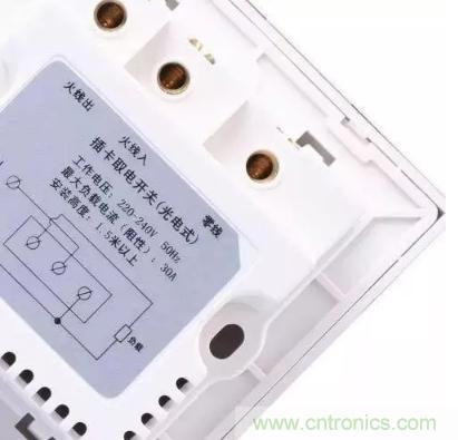 注意:普通麵板開關裏麵一般隻有兩根線:火線進和火線出,而插卡控製開關一般三根線:火線進,火線出,零線。