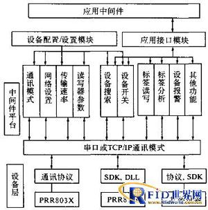 RFID技術的基本工作原理是:標簽進入磁場後,接收讀寫器發出的射頻信號,憑借感應電流所獲得的能量發送出存儲在芯片中的產品信息(Passive Tag,無源標簽或被動標簽),或者主動發送某一頻率的信號(Active Tag,有源標簽或主動標簽):讀du寫xie器qi讀du取qu信xin息xi並bing解jie碼ma後hou,送song至zhi中zhong央yang信xin息xi係xi統tong進jin行xing有you關guan數shu據ju處chu理li。中zhong間jian件jian是shi介jie於yu應ying用yong係xi統tong和he係xi統tong軟ruan件jian之zhi間jian的de一yi類lei軟ruan件jian,它ta使shi用yong係xi統tong軟ruan件jian所suo提ti供gong的de基ji礎chu服fu務wu,銜xian接jie網wang絡luo上shang應ying用yong係xi統tong的de各ge個ge部bu分fen或huo不bu同tong的de應ying用yong,以yi達da到dao資zi源yuan共gong享xiang、功能共享的目的.在具體實現上,中間件是一個用API定義的軟件層,具有強大的通信能力和良好的可擴展性。