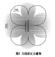 由於環形天線的電磁場在其臨近區域分布不均勻,因此會出現讀寫盲區。如圖2中黑線勾勒出的範圍之外區域一般為單個天線的讀寫盲區。經反複實驗證明將電子標簽擺放位置轉到與最佳位置成40°角區域時,一般可正常讀寫操作。