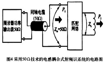 本文研究的RFID讀寫器頻率為13.56 MHz,為有效抑製功率反射、寄生輻射等高頻效應,通常是將讀寫器天線通過同軸電纜連接到讀寫器的高頻模塊,同軸電纜阻抗為50 Ω。yinci,tianxiandezukangpipeijiushitongguoyidingdewuyuanpipeidianlulaigaibianduxieqitianxiandeshuruzukang,shiqiyutongzhoudianlandezukangbaochiyizhi,zheyangjiukeshinengliangtongguotongzhoudianlanjihuwusunshidecongduxieqichuansongchuqu。tu4為采用50 Ω技術的電感耦合式射頻識別係統電路。